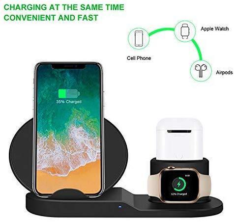 Il est pratique de charger la montre Apple et l'iPhone, ainsi que les Airpods en même temps au même endroit: robustes, soignés et organisés.